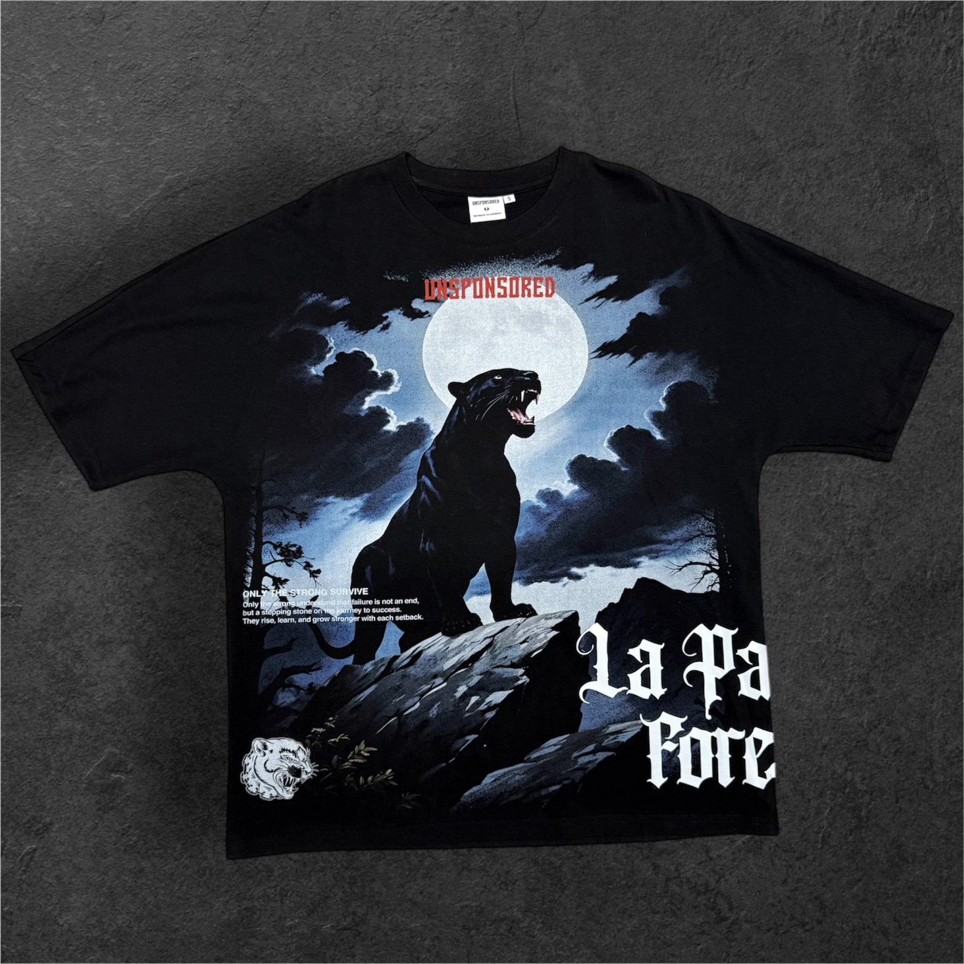 Panther on a cliff under a full moon- mysterious vigilant, La Pantera Forever.