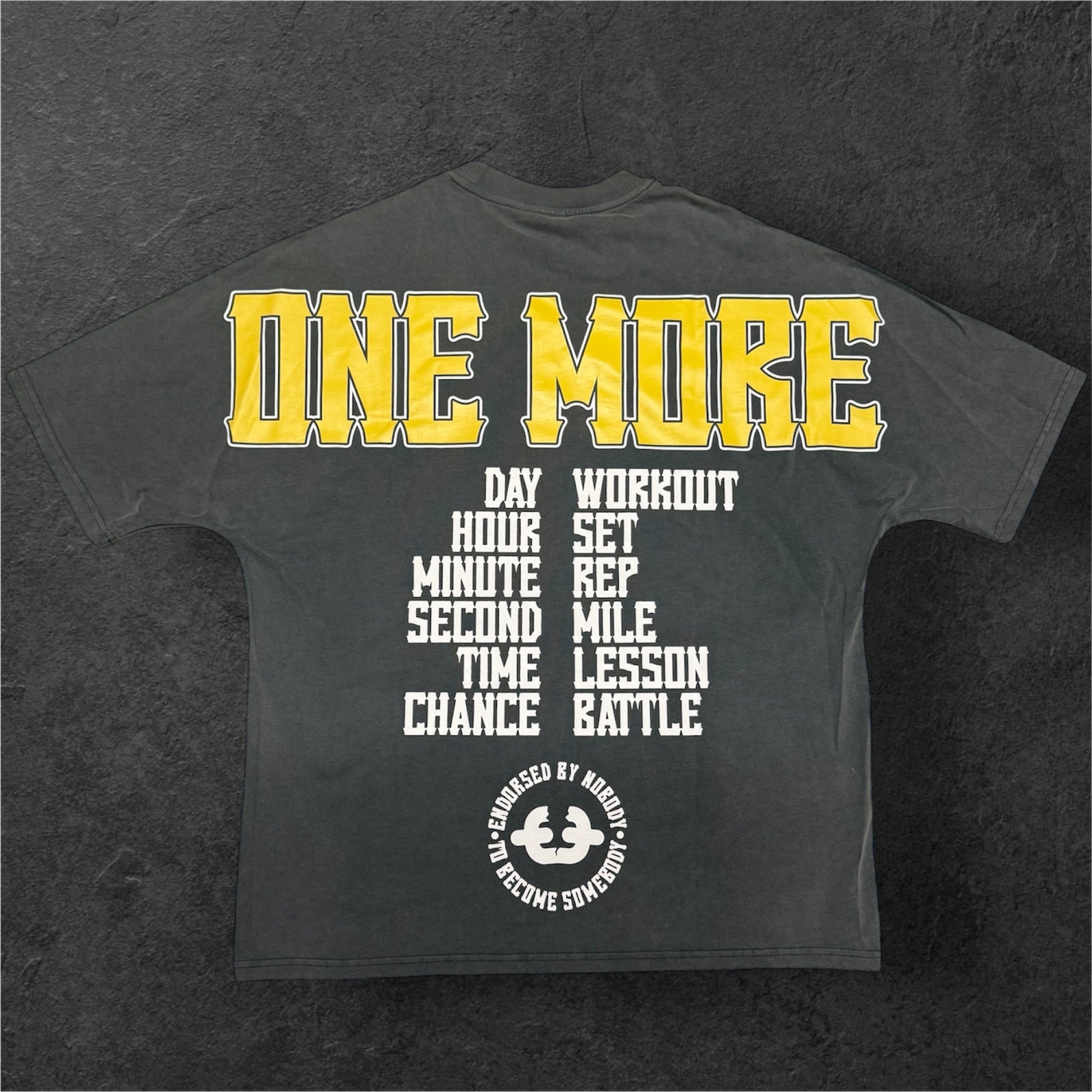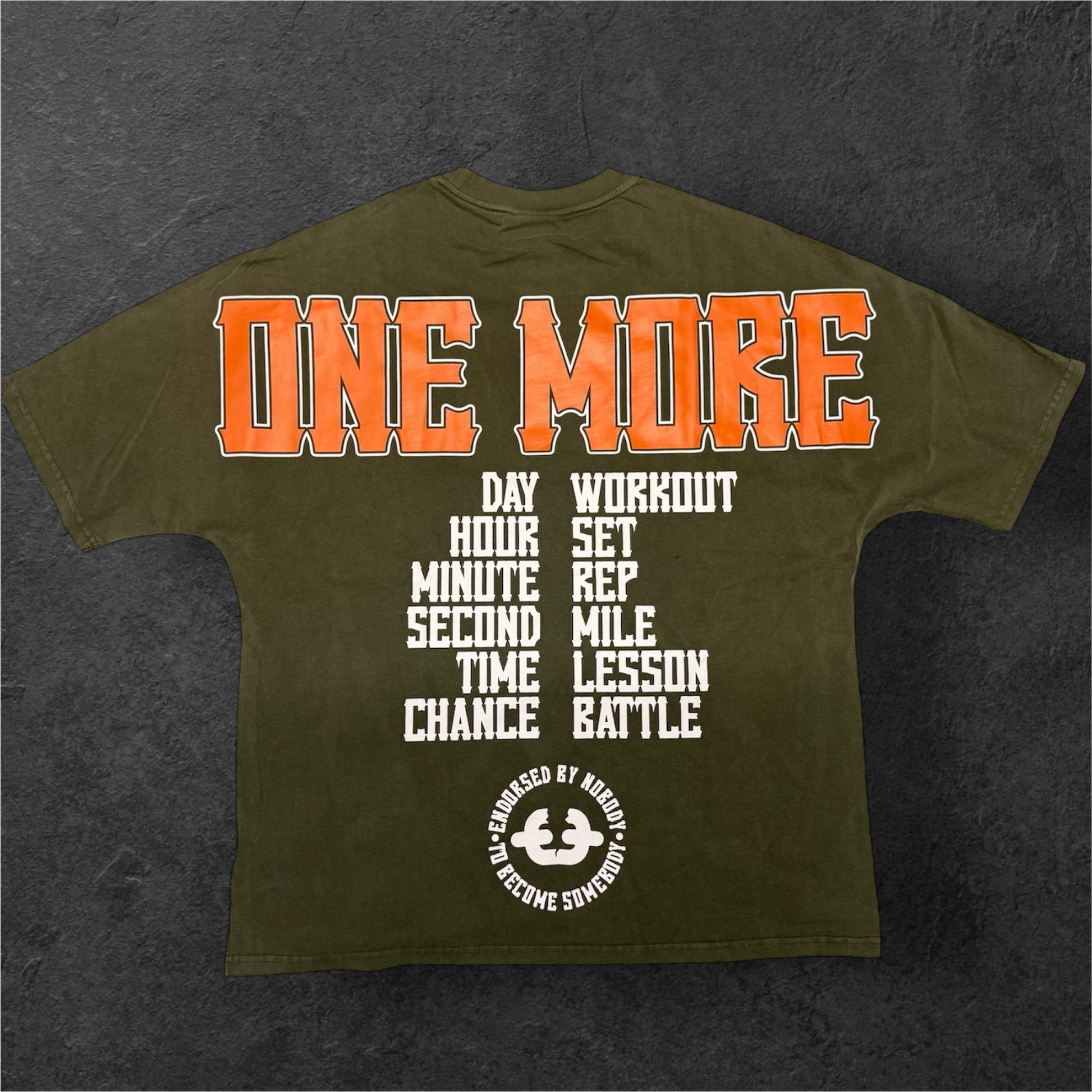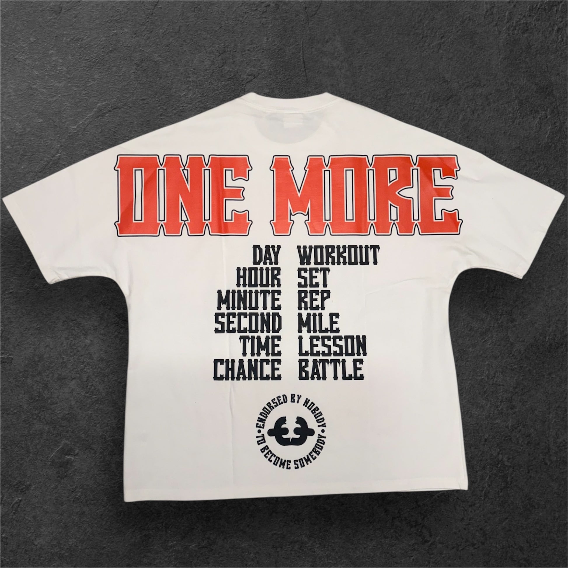 This "ONE MORE- Tee" captures the simple truth that sometimes, all it takes is just one more to make a difference. Crafted for comfort and style, this shirt serves as a subtle reminder to embrace persistence and the power of that one extra step, whether in effort, creativity, or passion. Perfect for those who understand that success often hinges on not giving up and always pushing a little further.